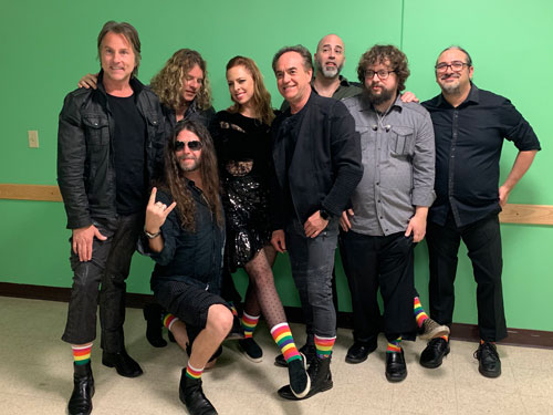 The performers—all sporting Sock Out Cancer’s signature multi-colored socks—electrified The Forum, bringing the likewise be-socked audience to its feet to dance in place as well as in the aisles. Midway through the concert, Chalfant and vocalist/violinist Natalie Murphy temporarily left the stage to join the audience and conga through the aisles, further adding to the evening’s excitement. And songs like Santana’s “Hold On” and Journey’s “Don’t Stop Believin’” took on a new meaning of encouragement and support, making Friday’s event not only a concert, but a coming together for all those whose lives have been affected by cancer. In the words of concert goer and breast cancer survivor Sherry Campon: “I hope we can beat cancer altogether. Let’s sock it out!”